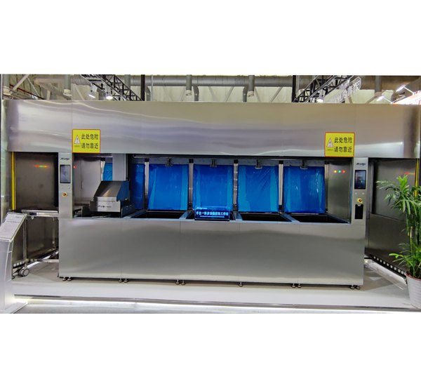 二、全自動伺服機械臂搬運(yùn)傳輸清洗籃架,各個功(gōng)能槽自動(dòng)清洗、消(xiāo)毒(dú)、幹燥,運行穩定快速(sù),極大地減輕人手(shǒu),保證預清洗及消毒質量